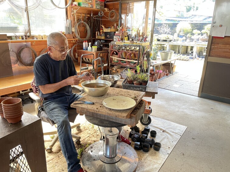 家業を継ぎ、そこから全国各地の盆栽店に学ぶため東奔西走。
