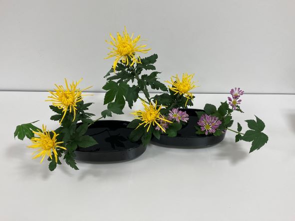 現代空間を自由に飾るいけばな。基本となる植物を色と形でとらえ、器の機能に合わせ、小原流の"たてるかたち”をもとに、生け花を枠に見せるテクニックを伝授。