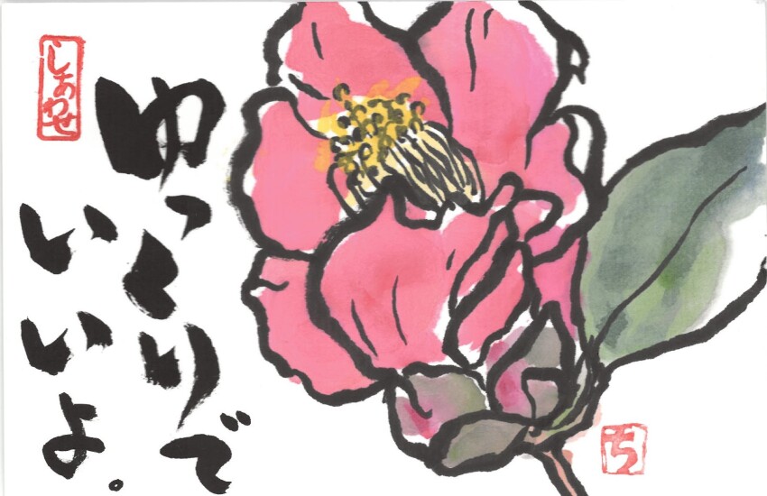 「絵は苦手だけど・・・でも送りたい一言、口に出して言えなくても手紙なら伝えることができる」という方にぴったりです。手作りした受講者の落款印と遊印を入れて仕上げます。