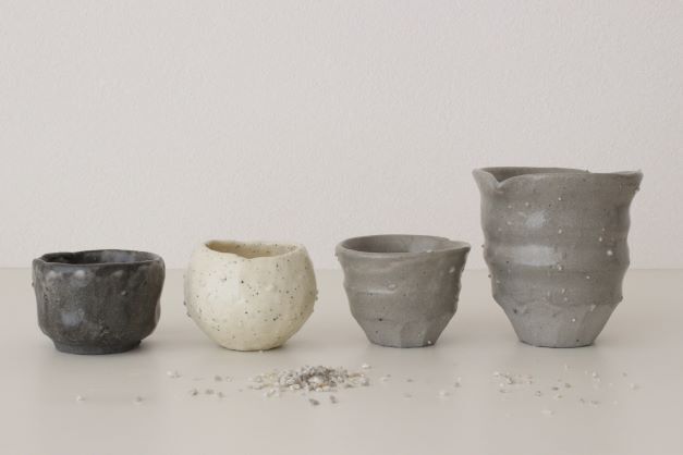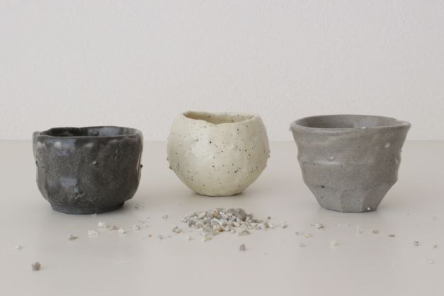 つぶつぶの石をお好みで土に混ぜ、出来たオリジナルの土で酒器づくり。