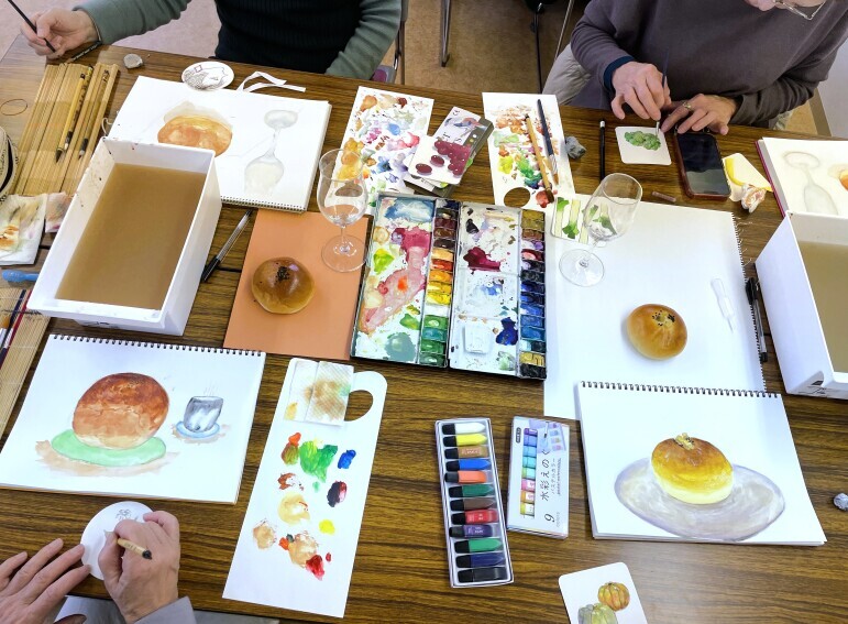 お試しの1日体験では、色鉛筆や水彩など身近な画材を使って作品を仕上げます。
