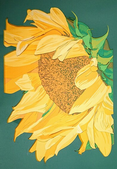 カラフルな紙を重ね、下絵に沿って切り抜くことで、絵に仕上げるアートです。