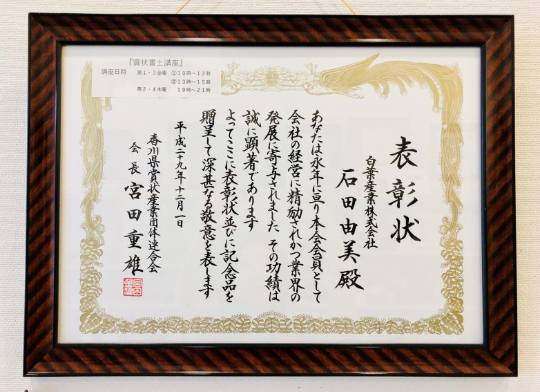 長年、賞状書士の難しいイメージの払拭と普及に尽力されています。