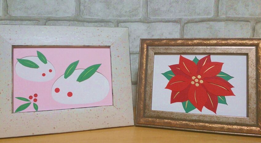 初めての方と個別講座受講の方は、L判サイズの作品を作り、額に入れてお持ち帰りいただきます。