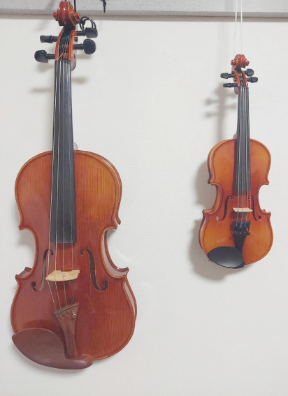 バイオリンは、通常の大きさのもの以外にも小さいものでは1/16スケールのものからあるので、自分にあったサイズの楽器を選ぶところからスタートできます。